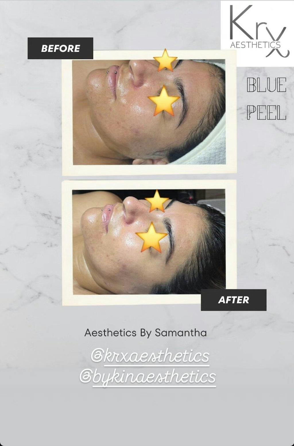 The KrX Blue Peel is a superficial chemical peel formulated at a gentle 3.5 pH, offering effective exfoliation without the downtime often associated with stronger treatments. Designed with versatility in mind, it delivers clarity and refinement while respecting the integrity of the skin barrier—making it suitable even for first-time clients with healthy skin.